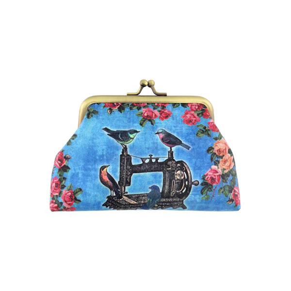 From Retro collection designed by Mlavi Studio feature charming prints inspired by cool retro sewing machine, made with durable, Eco-friendly cruelty-free vegan/faux leather, these kiss lock frame coin purses have different retro art inspired print each side.